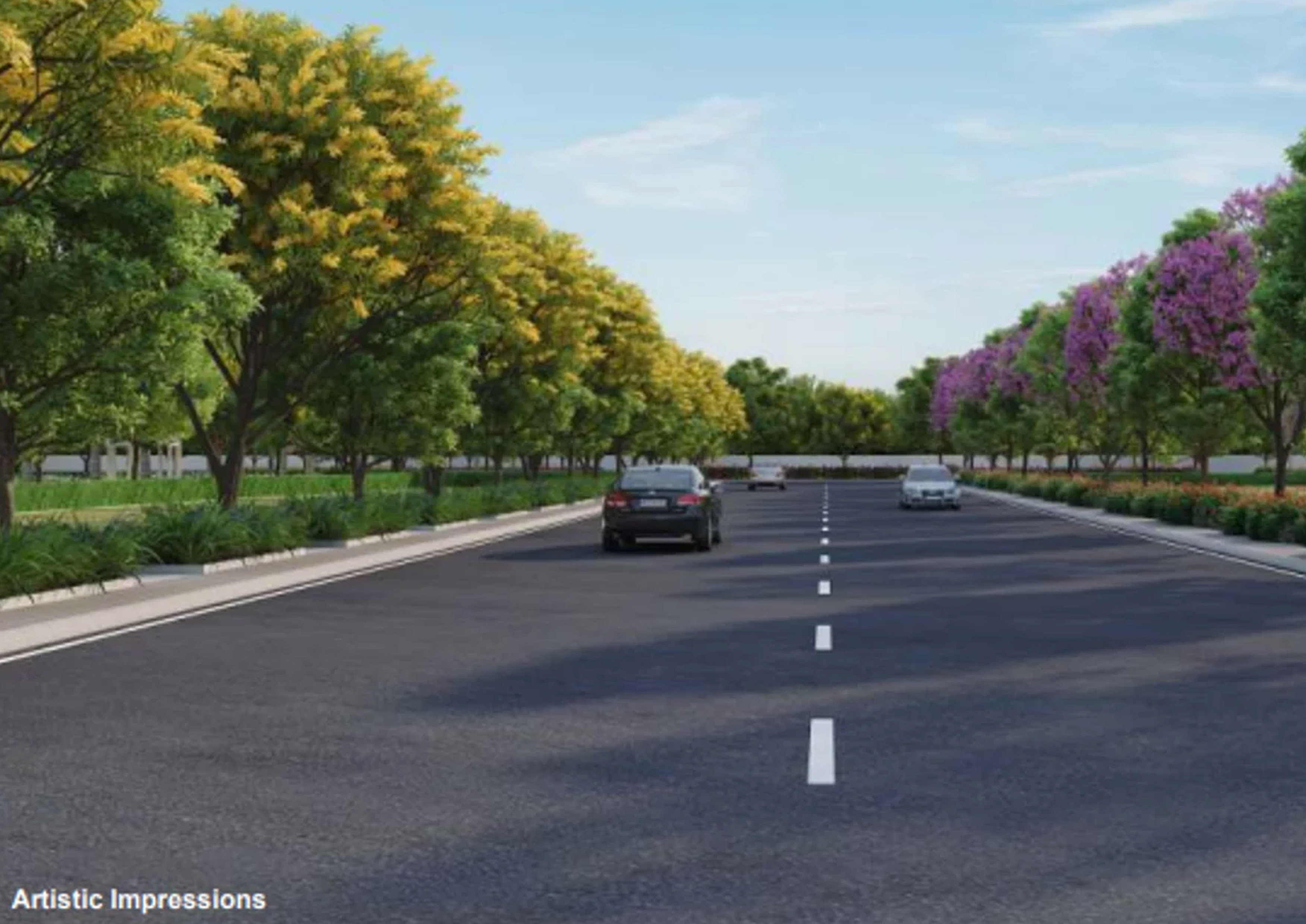 - — Green Spaces : Ample green areas and parks to enhance the natural beauty and reduce pollution.