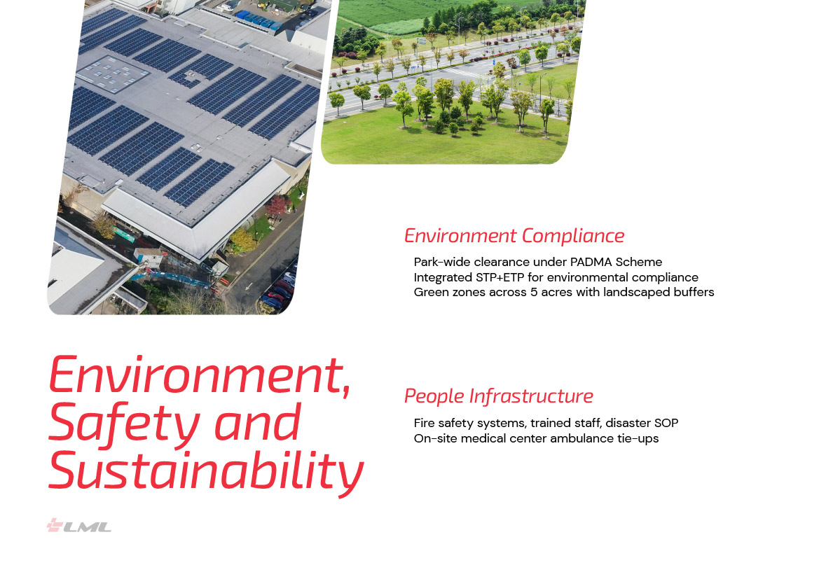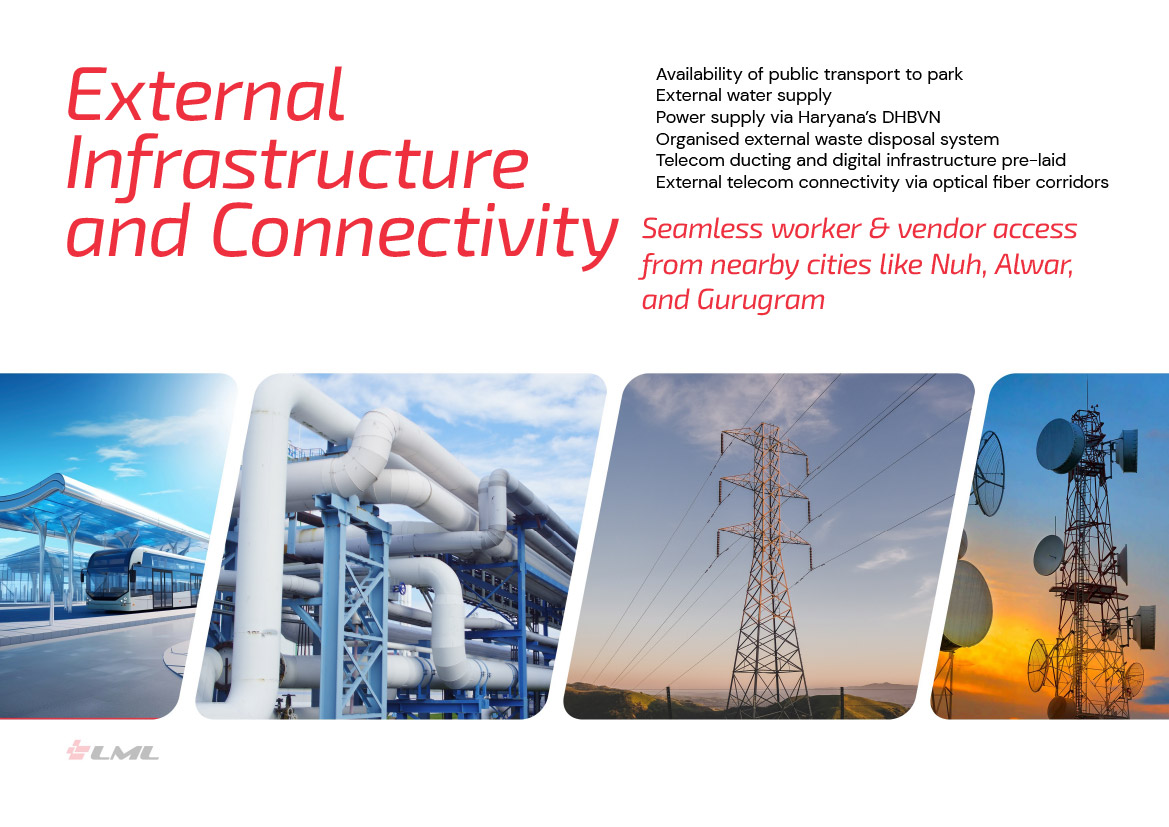18M Industrial-Grade Roads Designed for 20 MSA Load with 15-Year Life | RCC Boundary Wall with Secure Gated Access & Surveillance Provision | Advanced RCC Storm Water Drainage to Ensure Zero Water Logging | Pressurized 24X7 Water Supply Network Using DI Pipelines | CPHEEO-Compliant Sewerage