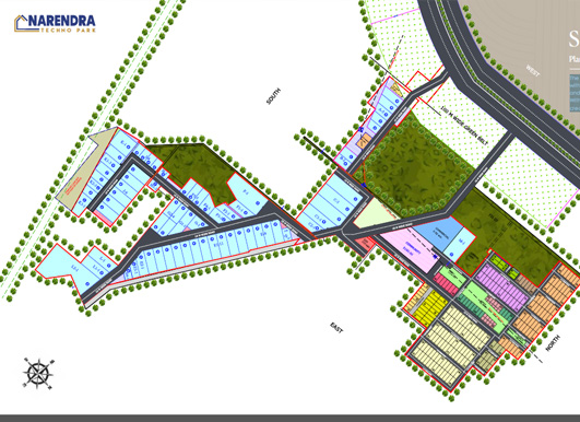 - Narendra Techno Park presents 69 systematically planned industrial plots, with plot areas ranging from 366.33 sq. yards to 6,341.83 sq. yards, accommodating a wide spectrum of industrial operations. The development is designed to support efficient circulation, smooth logistics, and long-term operational flexibility within a well-organised industrial setting.