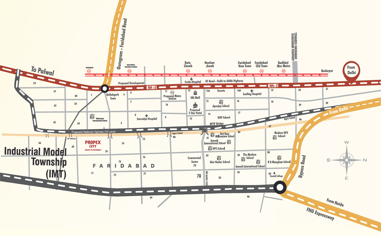 Propex Realty have launched its new project City, located at Sector 70 in Faridabad. The project is currently in an under-construction stage with the possession scheduled to be in possession on Jul 22. Sector 70 enjoys smooth connectivity to different parts of Faridabad through an integrated network of road and public transport. A number of reputed educational institutions, hospitals, bank and ATM branches can be found in the vicinity.